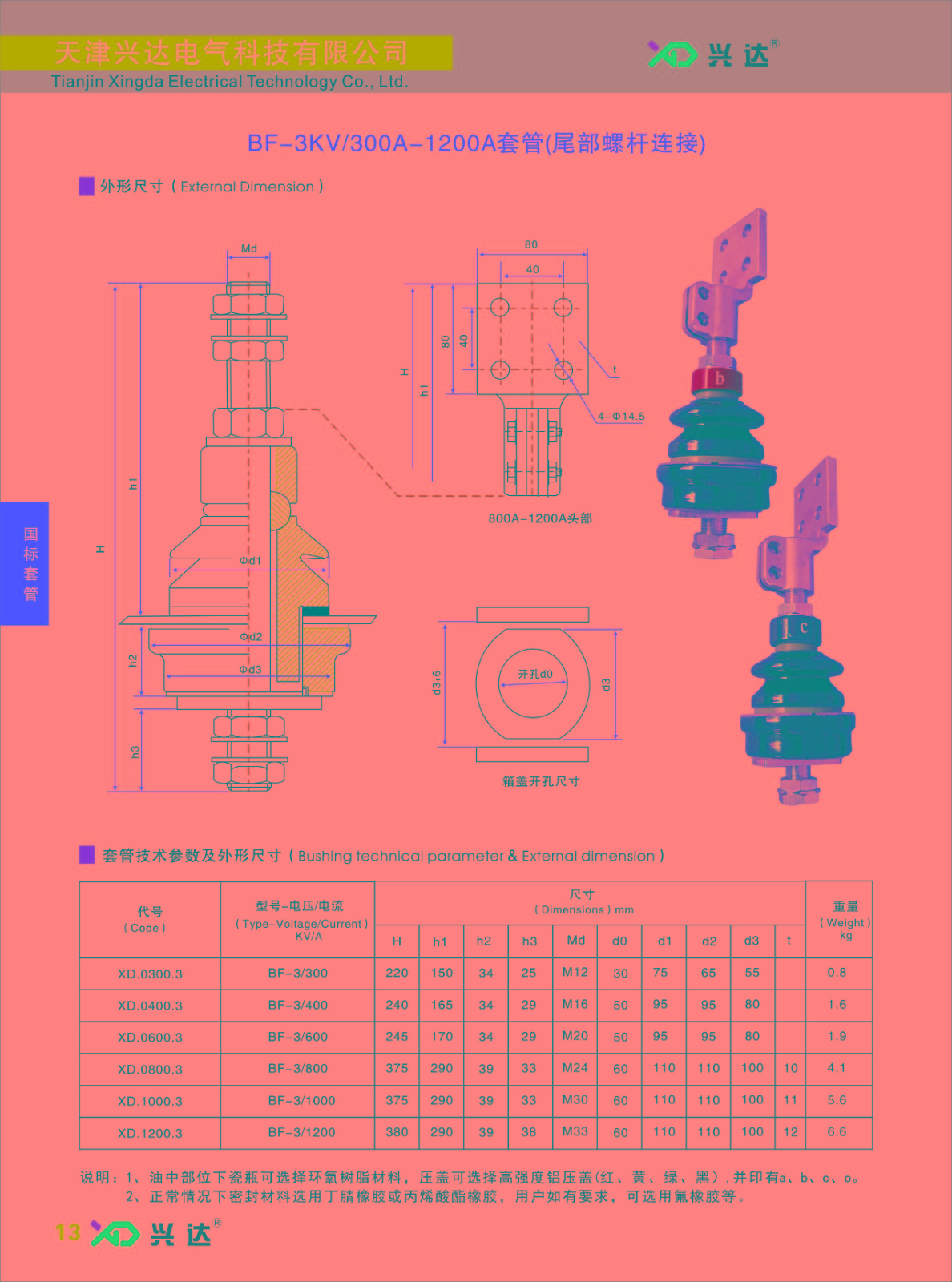 3.普通型套管適用于輕污穢地區(qū),防污型套管適用于重污穢地區(qū)。