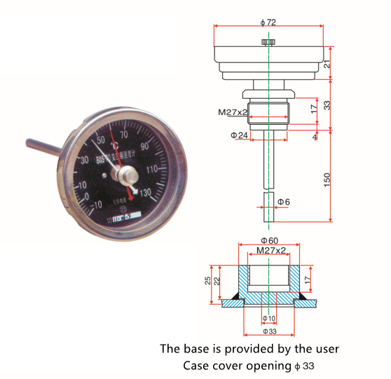 3、安裝時應擺正儀表后擰緊安裝接頭,不可將溫度計表殼當扳手使用,以免影響儀表的準確性。